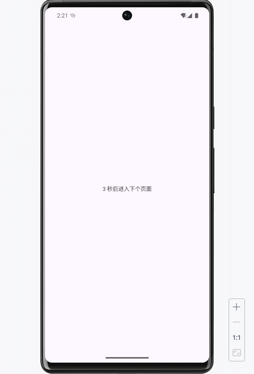 private final Runnable mGoNext = () -> startActivity(new Intent(MainActivity.this, MainActivity2.class));运行测试 App,刚打开的 App 界面如图 2-26 所示,过了 3 秒发生跳转事件的 App 界面如图 2-27 所示,可见成功跳到了新页面。