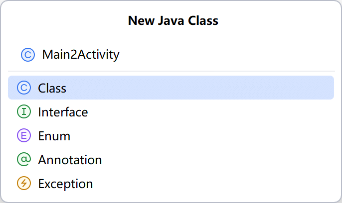 在右键菜单中依次选择 New->Java Class,弹出如图 2-23 所示的代码创建窗口。