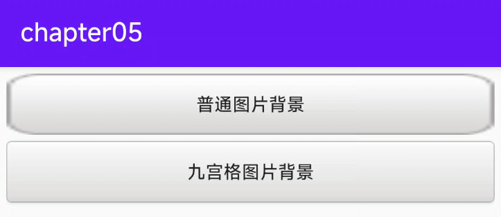 将某张图片设置成视图背景时,如果图片尺寸太小,则系统会自动拉伸图片使之填满背景。可是一旦图片拉得过大,其画面容易变得模糊,如图 5-3 所示,上面按钮的背景图片被拉得很宽,此时左右两边的边缘线既变宽又变模糊了。
