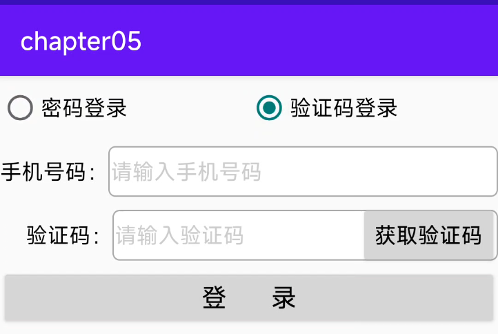 单选按钮 RadioButton:用来区分是密码登录还是验证码登录。