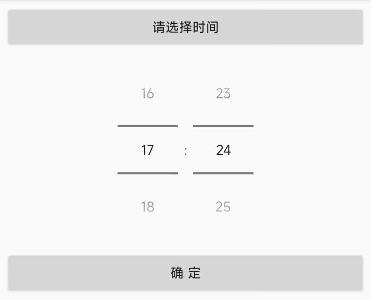 在界面上内嵌显示 TimePicker 的效果如图 5-35 所示,其中,小时与分钟可通过上下滑动选择。单独弹出时间对话框的效果如图 5-36 所示,其中小时与分钟按照钟表风格展示。