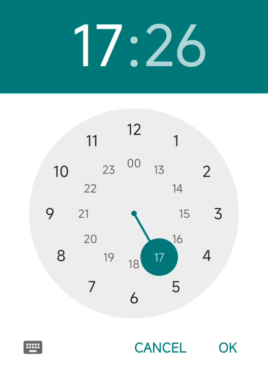 既然有了日期选择器,还得有对应的时间选择器。同样,实际开发中也很少直接用 TimePicker,而是用封装好的时间选择对话框 TimePickerDialog。该对话框的用法类似 DatePickerDialog,不同之处主要有两个: