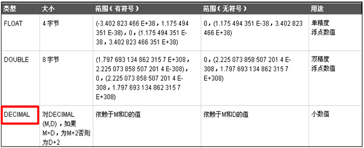 小数类型,可存放实型和整型 ,精度(p)和范围(s)