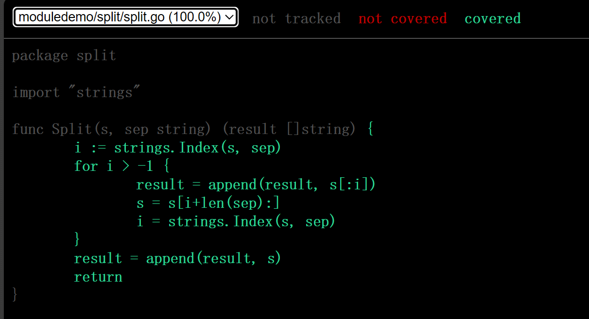 ok moduledemo/split 0.189s这一次我们的测试都通过了。