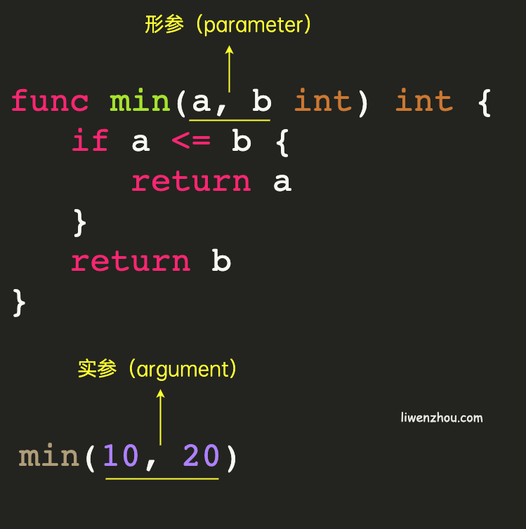 这次定义的min函数就同时支持int和float64两种类型,也就是说当调用min函数时,我们既可以传入int类型的参数。
