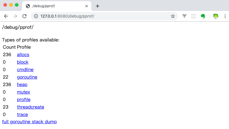pprof.Register(router)不管哪种方式,你的 HTTP 服务都会多出/debug/pprofendpoint,访问它会得到类似下面的内容: