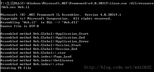 注意:要进入IL文件的文件夹 2:其中"/dll/"这个前面要有一个空格 3:.res文件要在.il文件前面,中间要有个空格